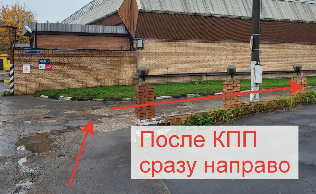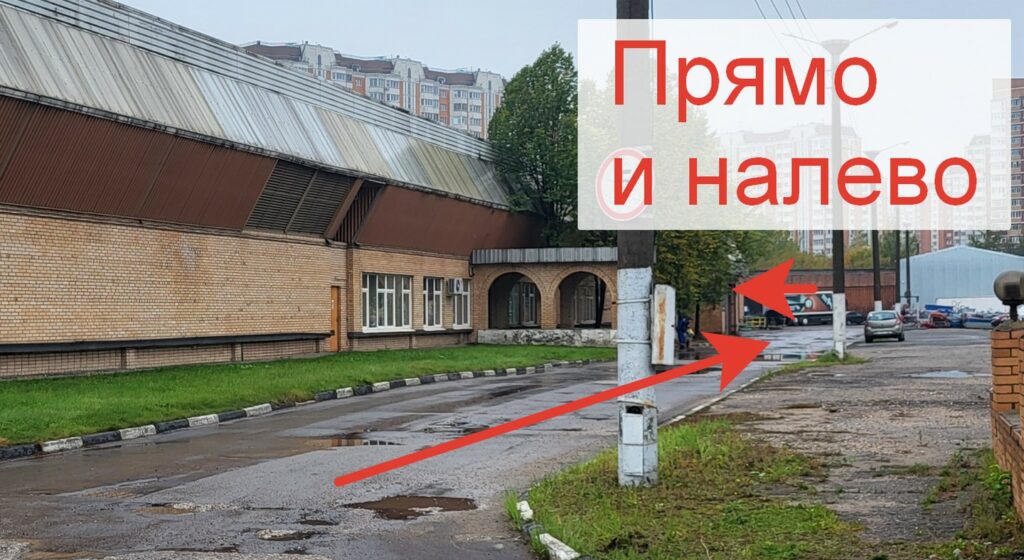 Двигайтесь прямо по территории до конца и поверните налево.